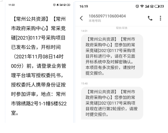 “这种短信告知服务很人性化,也很到位,可以让我们在参与政府采购活动中根据短信实时提醒,在不同流程节点,按时有序完成每步操作。”11 月8日,一位在常州市公共资源交易中心参与“常州市住房和城乡建设局机房硬件设备维保项目”投标的供应商赞许道。